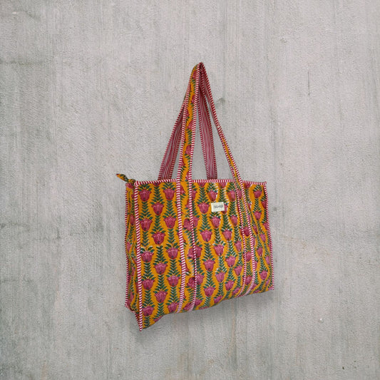 Es una técnica de estampación artesanal milenaria, que se comparte de generación en generación. Se hace con sellos de madera y se tiñe en telas naturales que logran conseguir colores muy especiales. Originaria de China, ha encontrado en India su máximo desarrollo.
