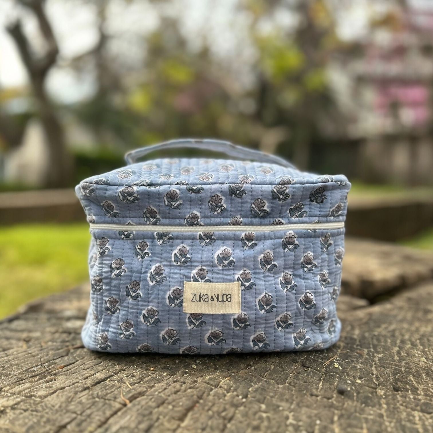 Nuestro neceser Palermo es ideal para tu día a día o para llevar de viaje. Hecho a mano en la India con la tradicional técnica de estampado en madera Block Print, cada pieza es única y refleja el encanto del trabajo artesanal.